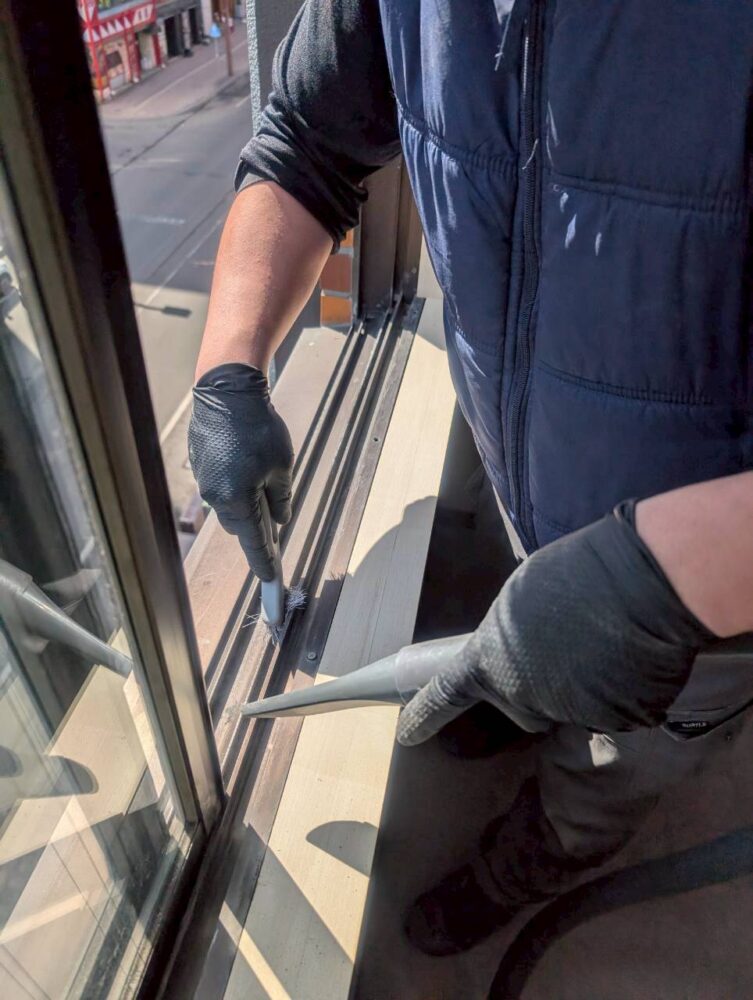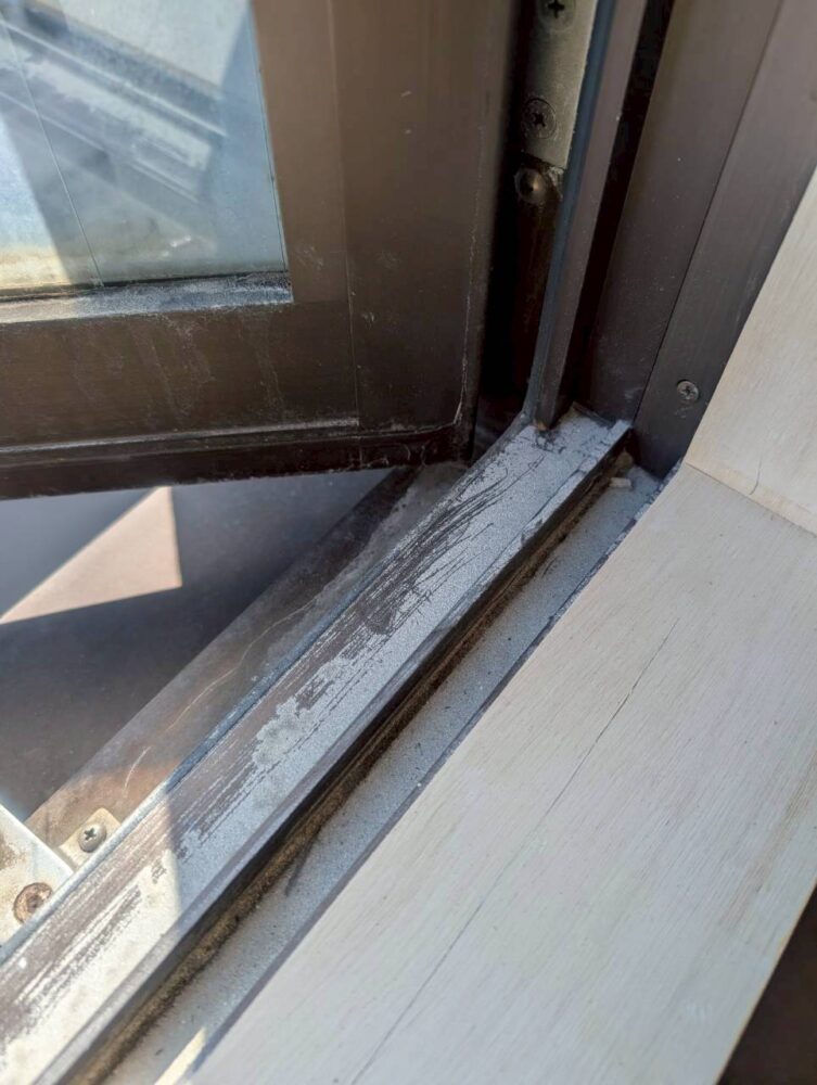 窓の清掃です。こちらもお部屋のリフォーム後で、粉塵が飛んでいます。