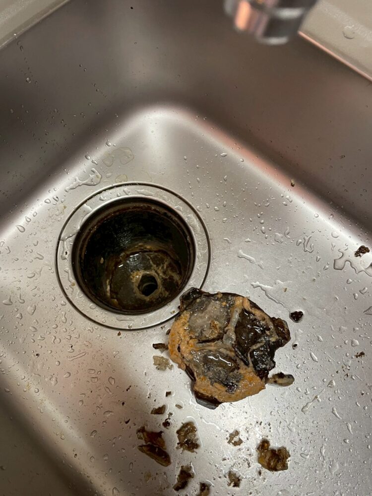 排水口周りの清掃です。油が固まってしまっています。