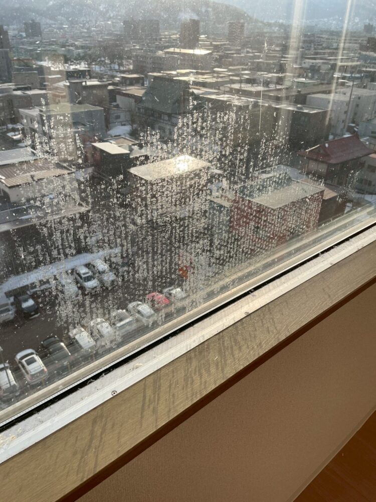 ガラスに断熱材等を貼っていると、このように粘着が残りやすいです。