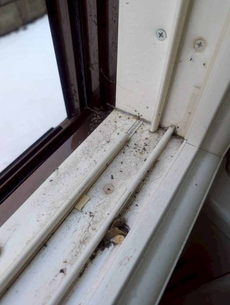 サッシの清掃です。