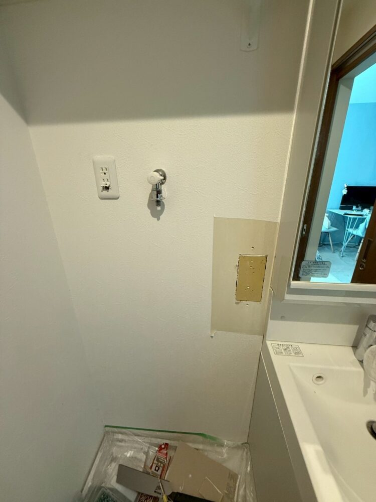 壁穴の補修作業です。(洗面)