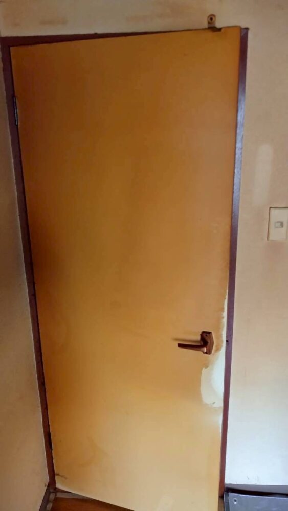 扉がタバコのヤ二で汚れています。茶色が全てヤ二汚れです。
