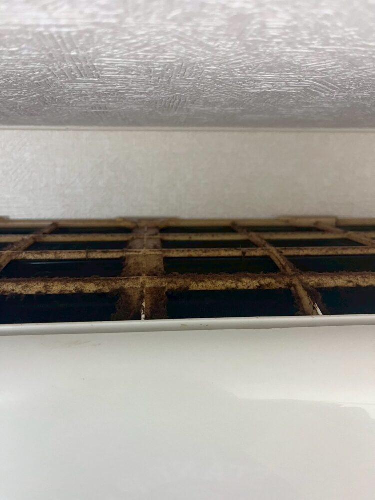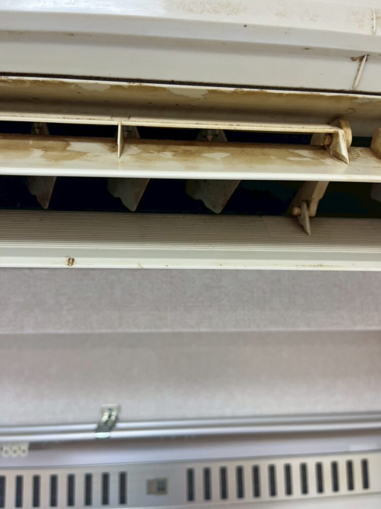 エアコンの分解清掃です。タバコのヤ二で汚れています。