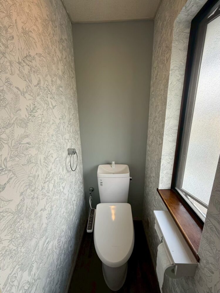 トイレの壁紙張り替え作業です。