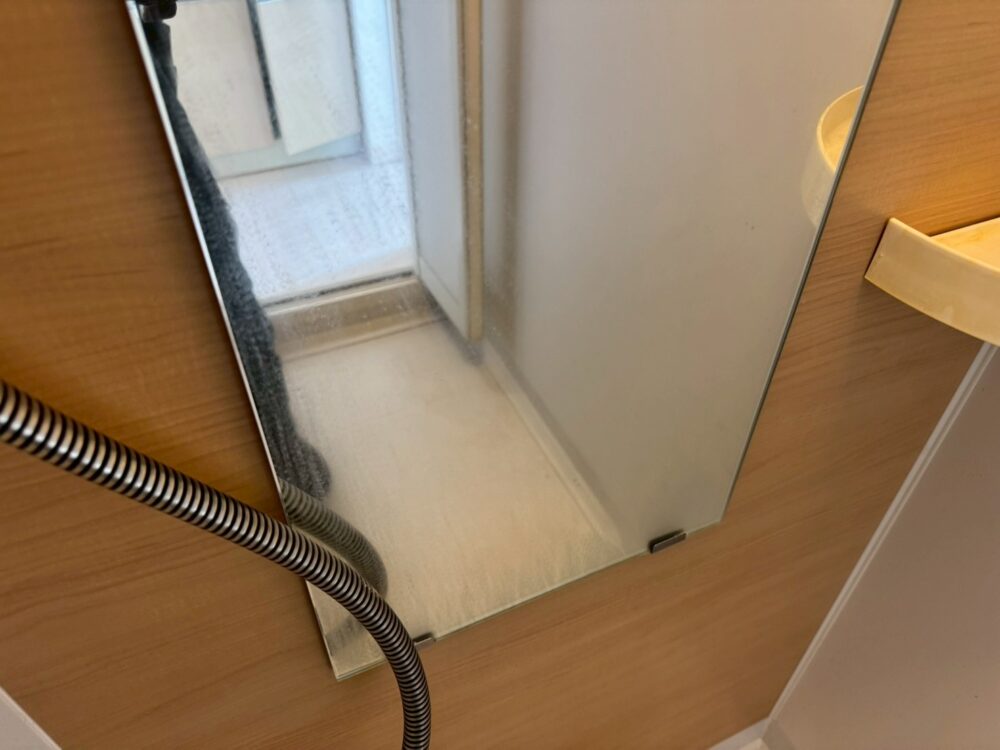 浴室の水栓周り、鏡の清掃です。