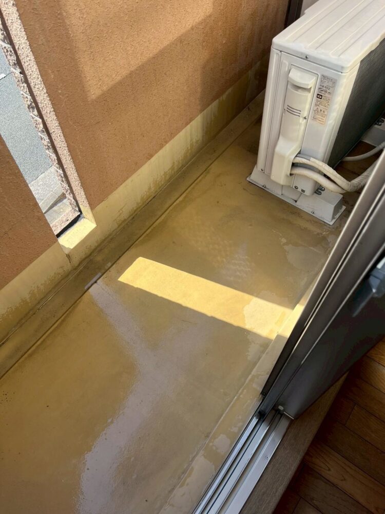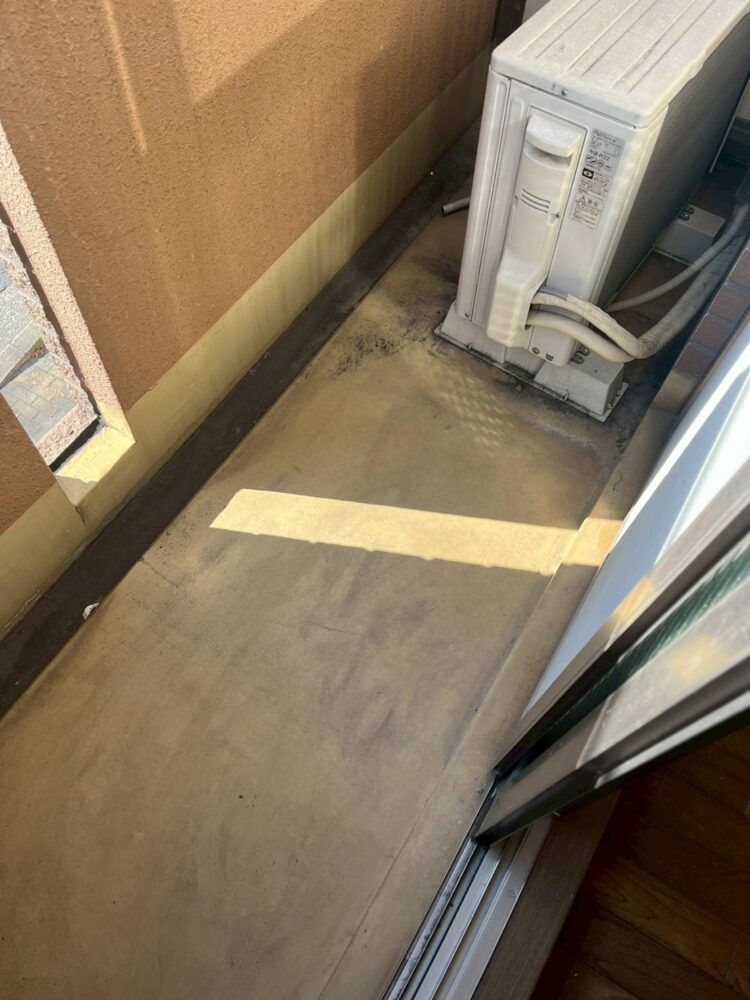 磨いて黒ずみを落とします。室外機周りもキレイにします。