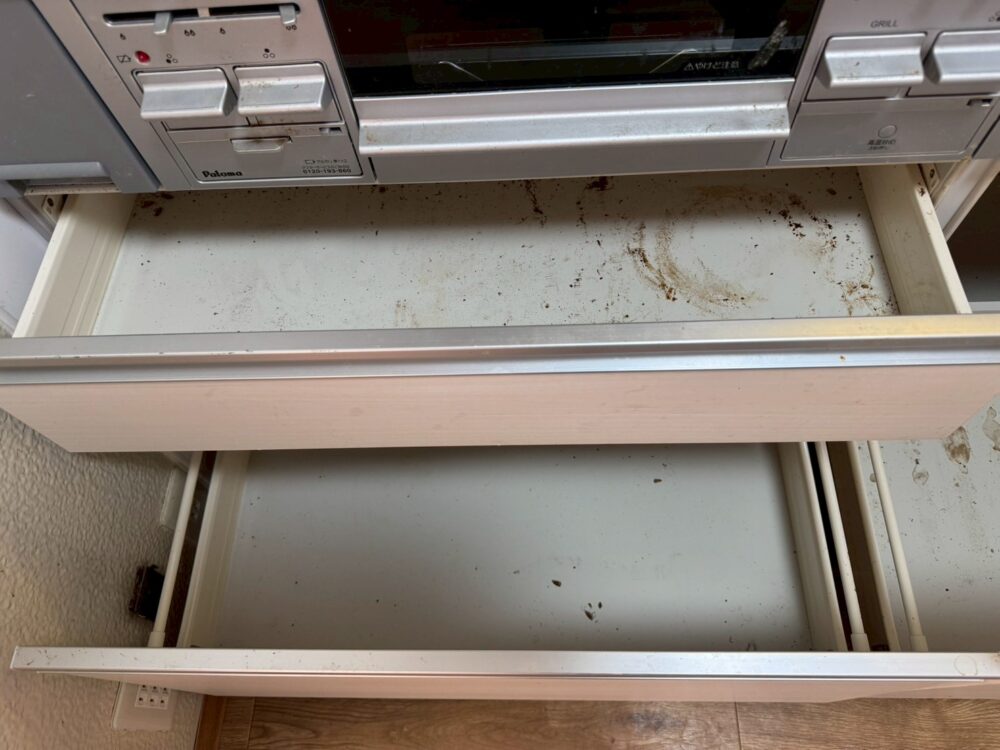 油や、ゴ〇ブリの糞、死骸で汚れています。