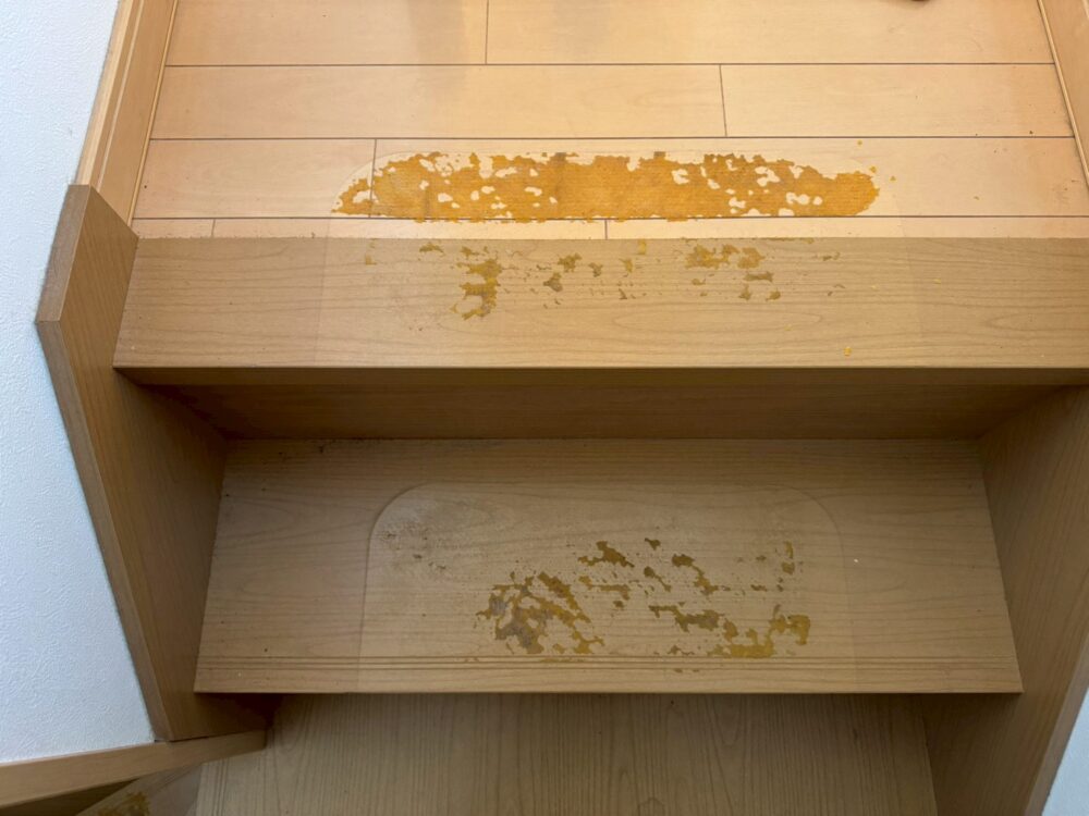 階段に滑り止めマットを敷いていたようです。