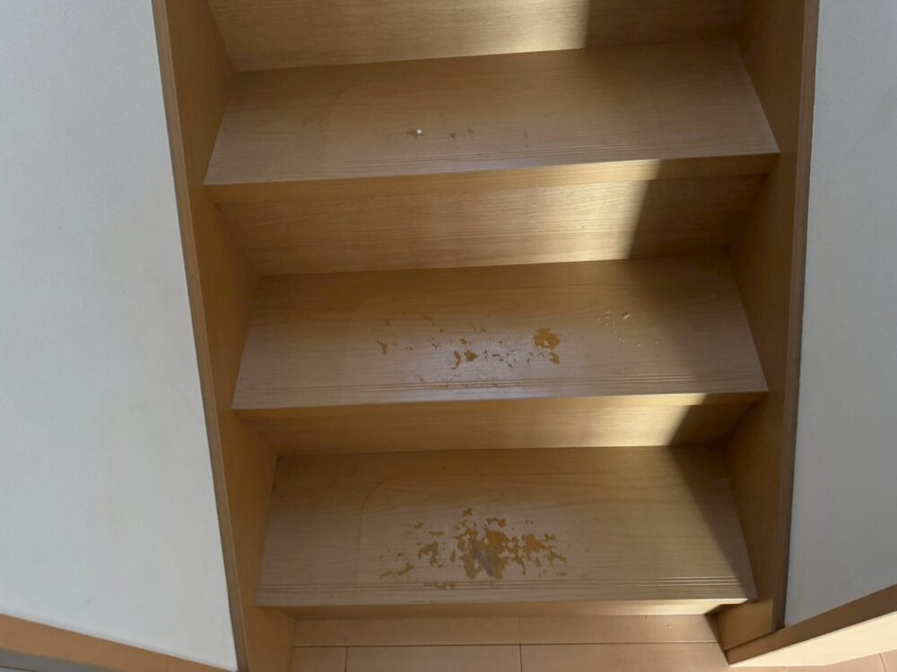 ベタベタな粘着物も、薬品も用いてしっかり落とします。