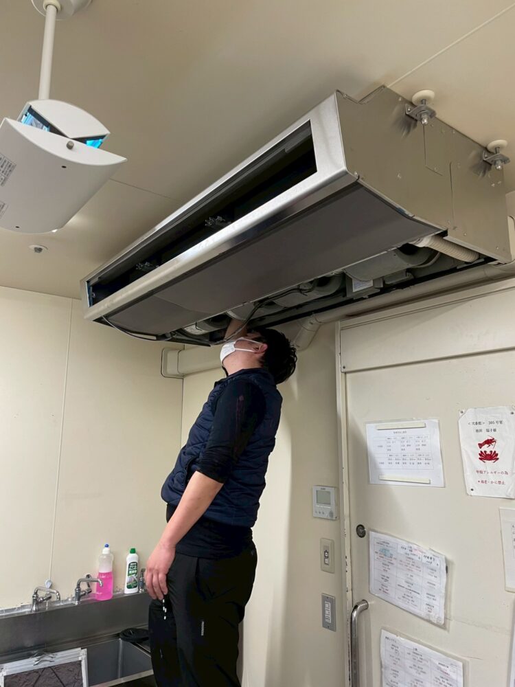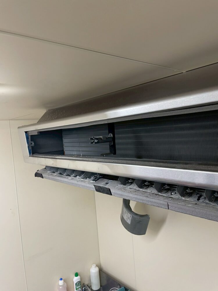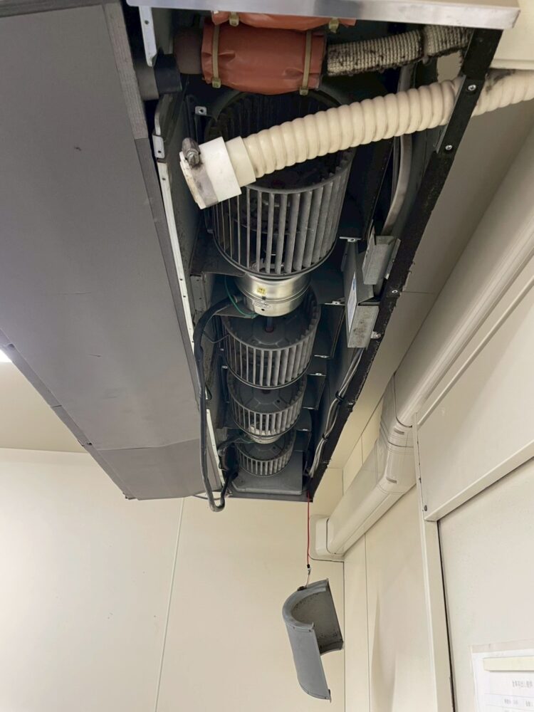 エアコンの分解洗浄です。飲食店の厨房に多いタイプです。