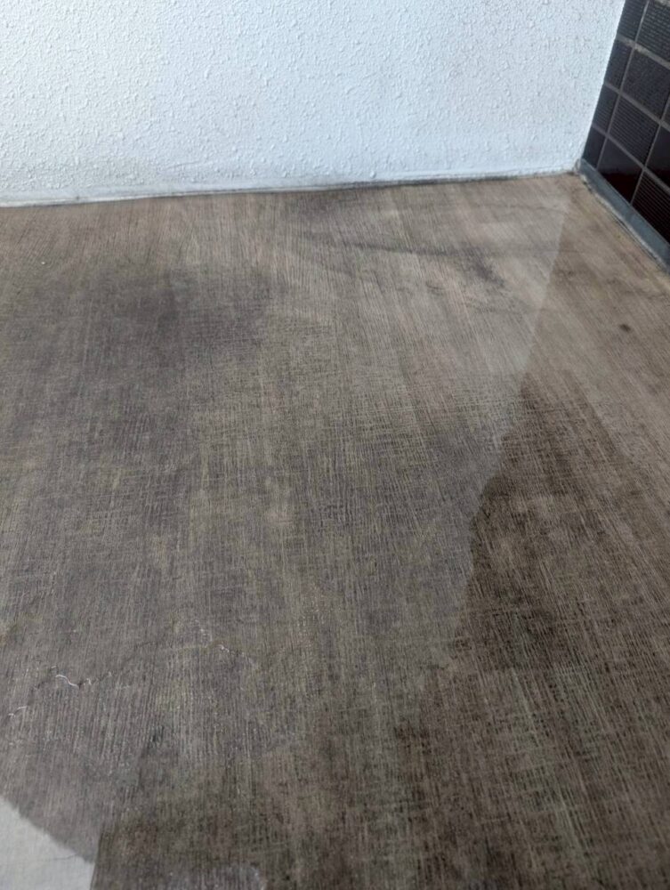 ベランダの清掃です。黒ずんでいます。
